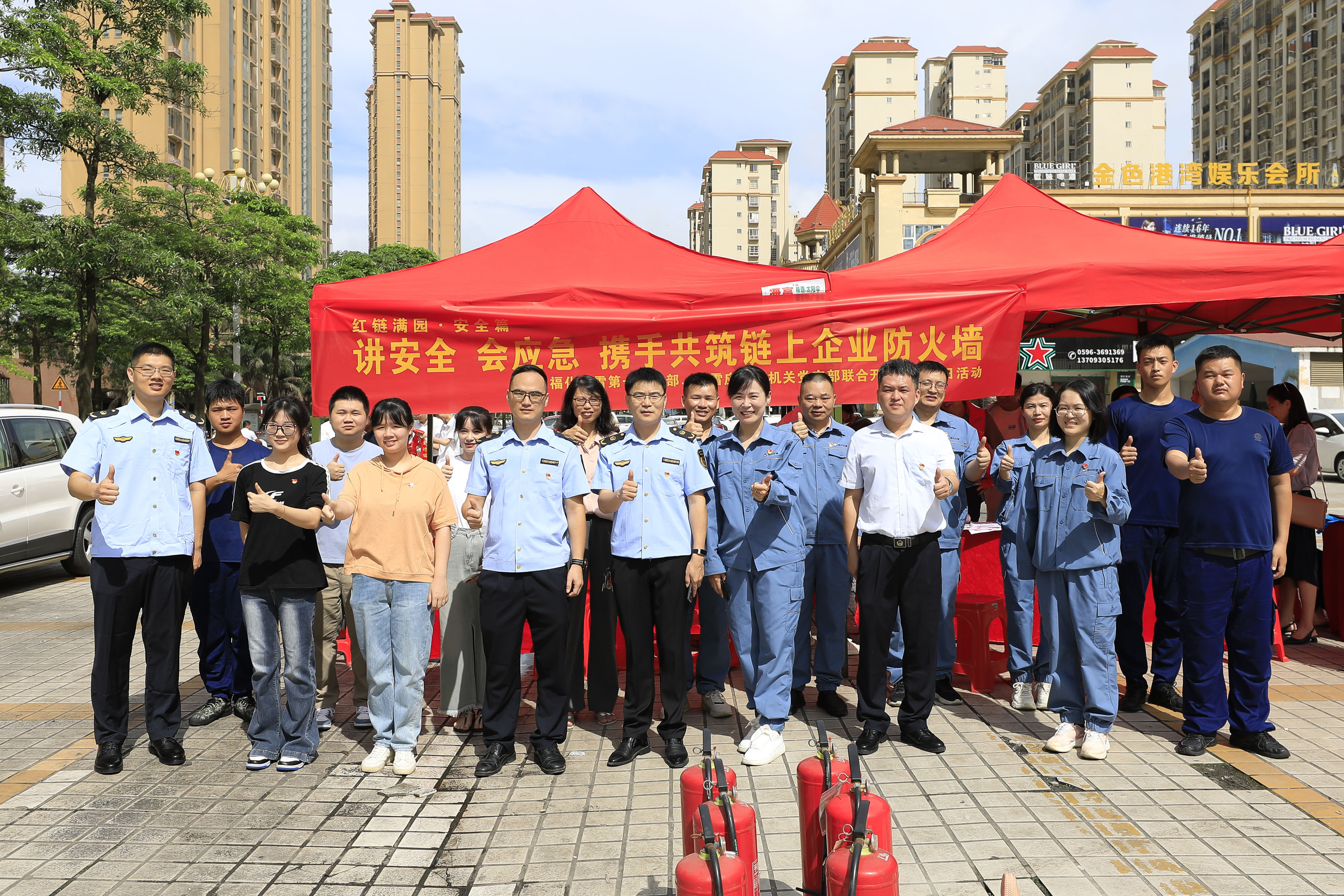 6月18日上午,古雷新港城广场热闹非凡。为积极响应第23个全国“安全生产月”活动号召,结合“红链满园”链上党建品牌建设要求,福化古雷第一党支部与古雷应急管理局机关党支部联合开展“讲安全、会应急,携手共筑链上单位防火墙”主题党日活动。