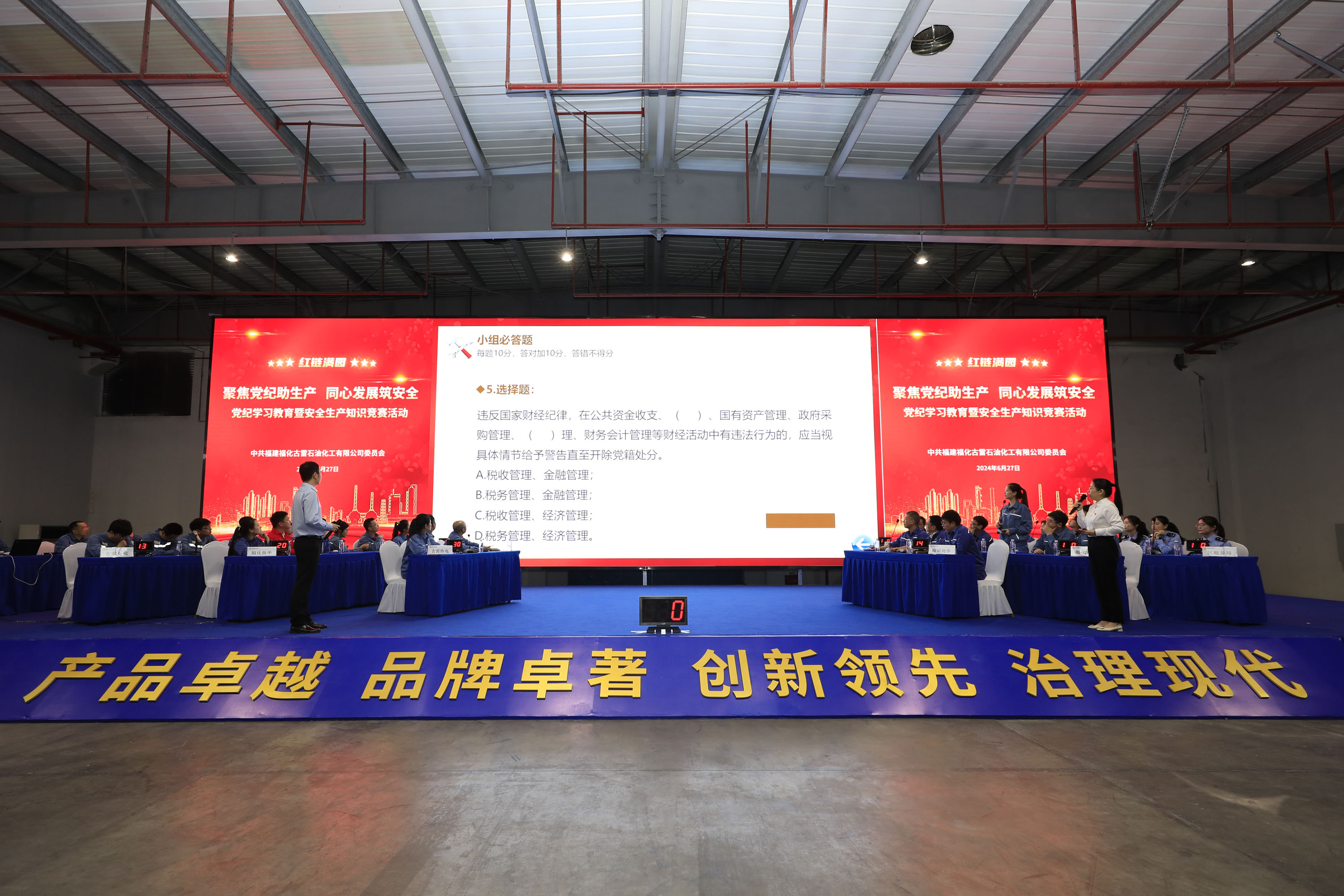 本次知识竞赛按照个人必答题、小组必答题、抢答题、风险题4个环节依次进行,题目涵盖《中国共产党纪律处分条例》、安全生产基础知识等相关内容。来自区税务局、古雷石化公司及集团古雷园区权属企业选派的10支代表队火热比拼、激烈角逐。