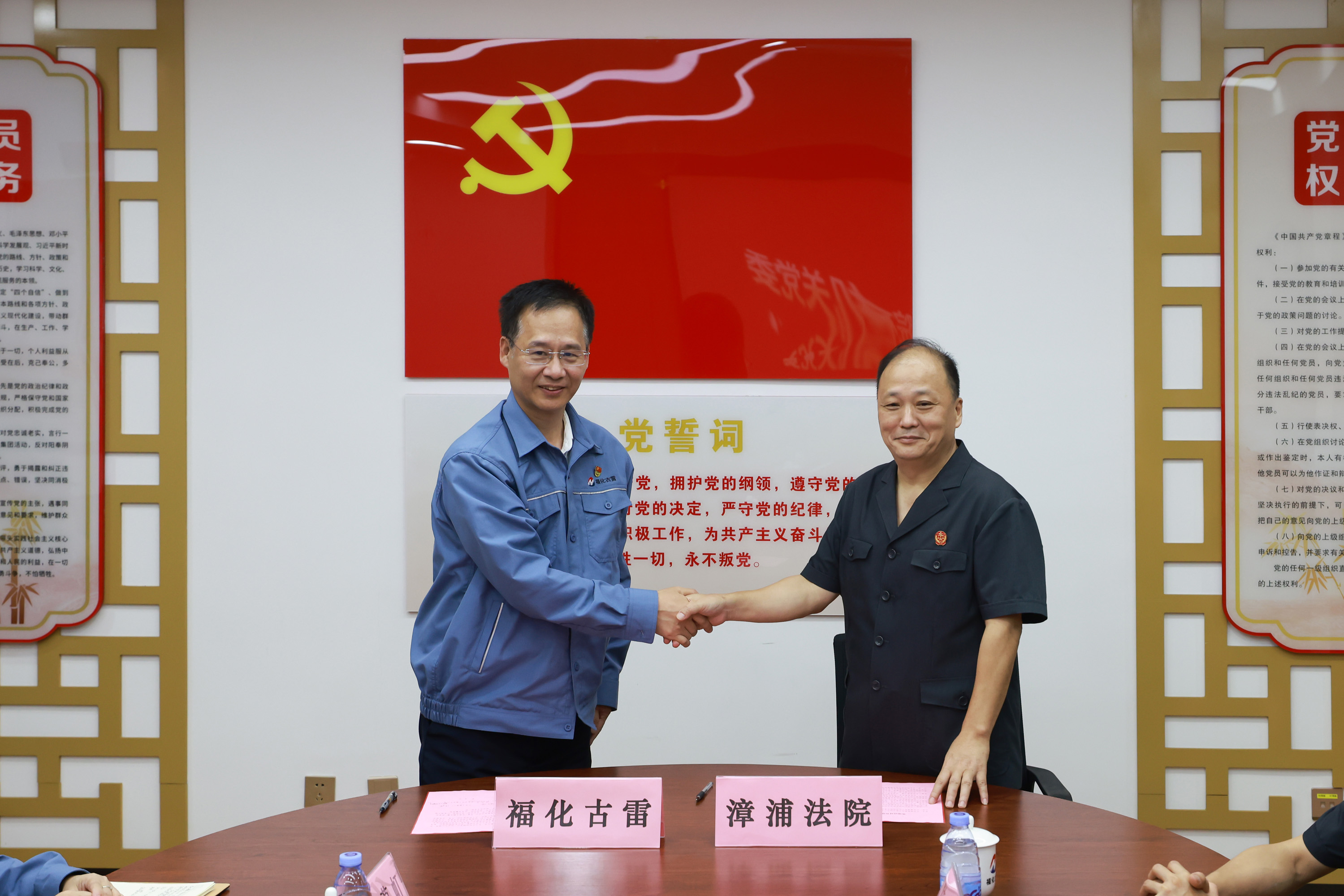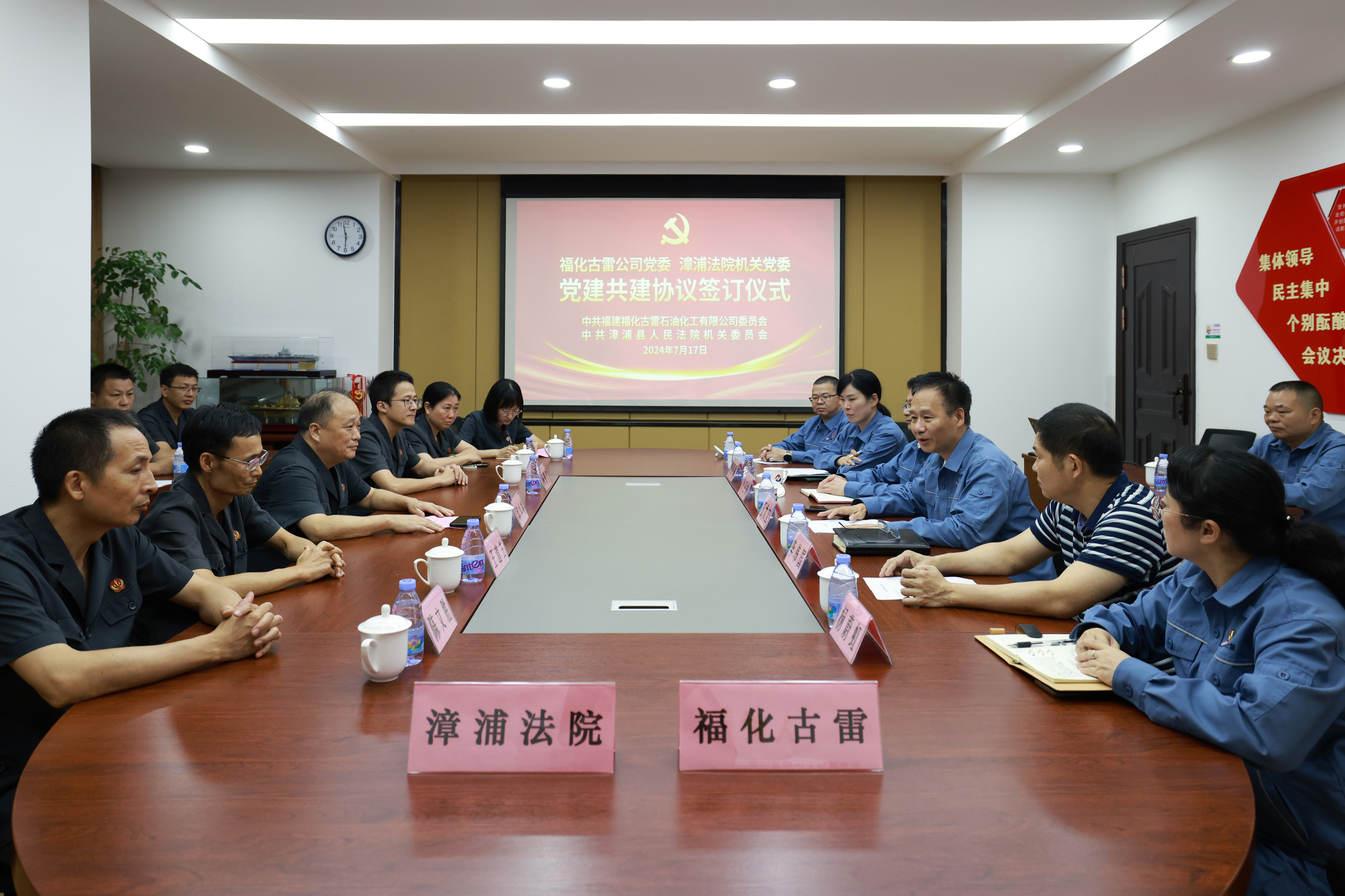 为持续深化“红链满园”链上党建品牌建设,进一步加强法企共建交流合作,7月17日下午,福化古雷党委与漳浦法院机关党委联合开展党建共建活动。福化古雷党委书记、董事长王大立,漳浦法院党组书记、院长邱小斌参加活动。