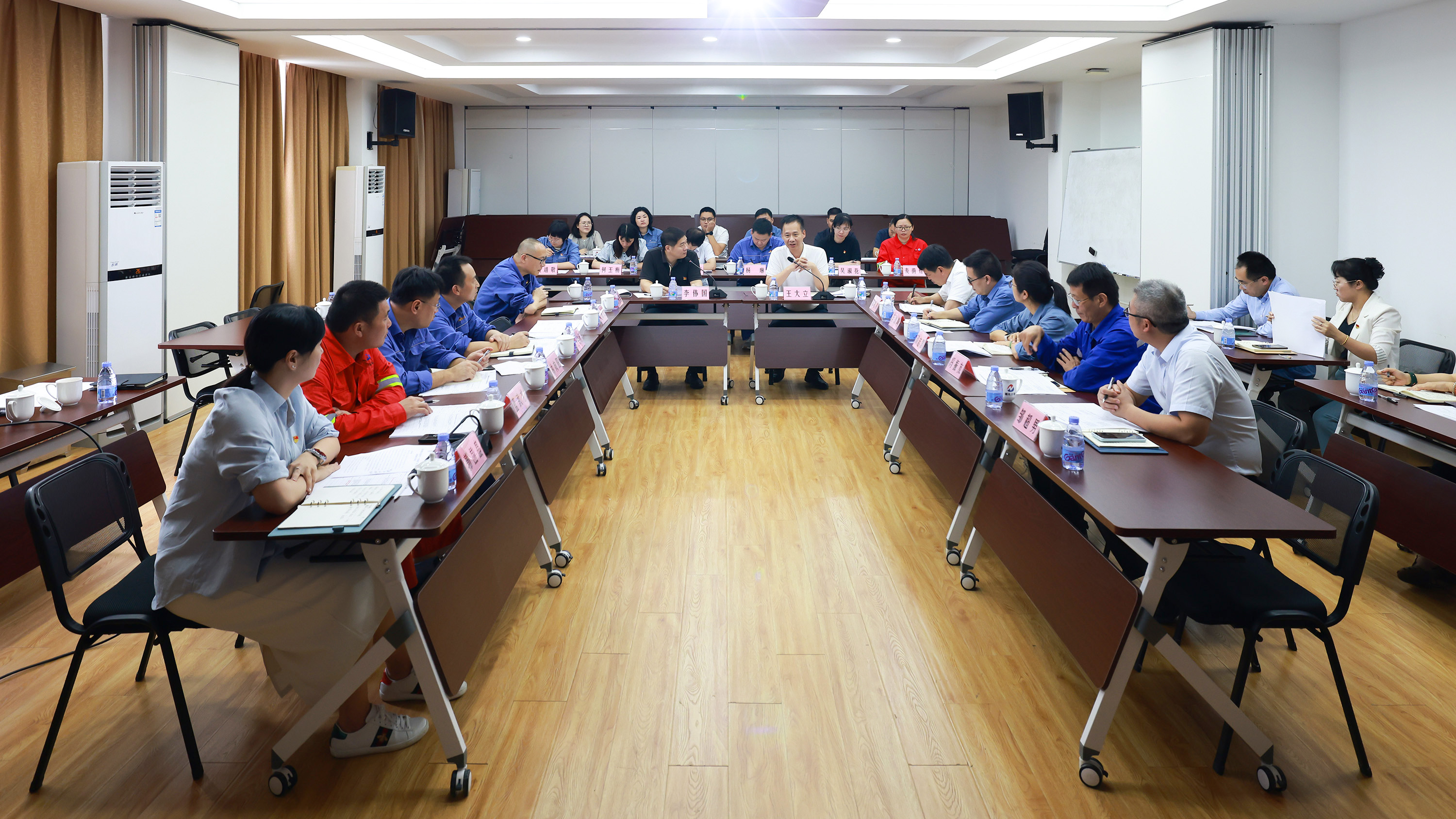 福化古雷党委副书记李伟国主持会议。集团古雷园区各企业党组织书记、党群宣传分管领导和党群宣传部门负责人,福化古雷各部室负责人参加会议。