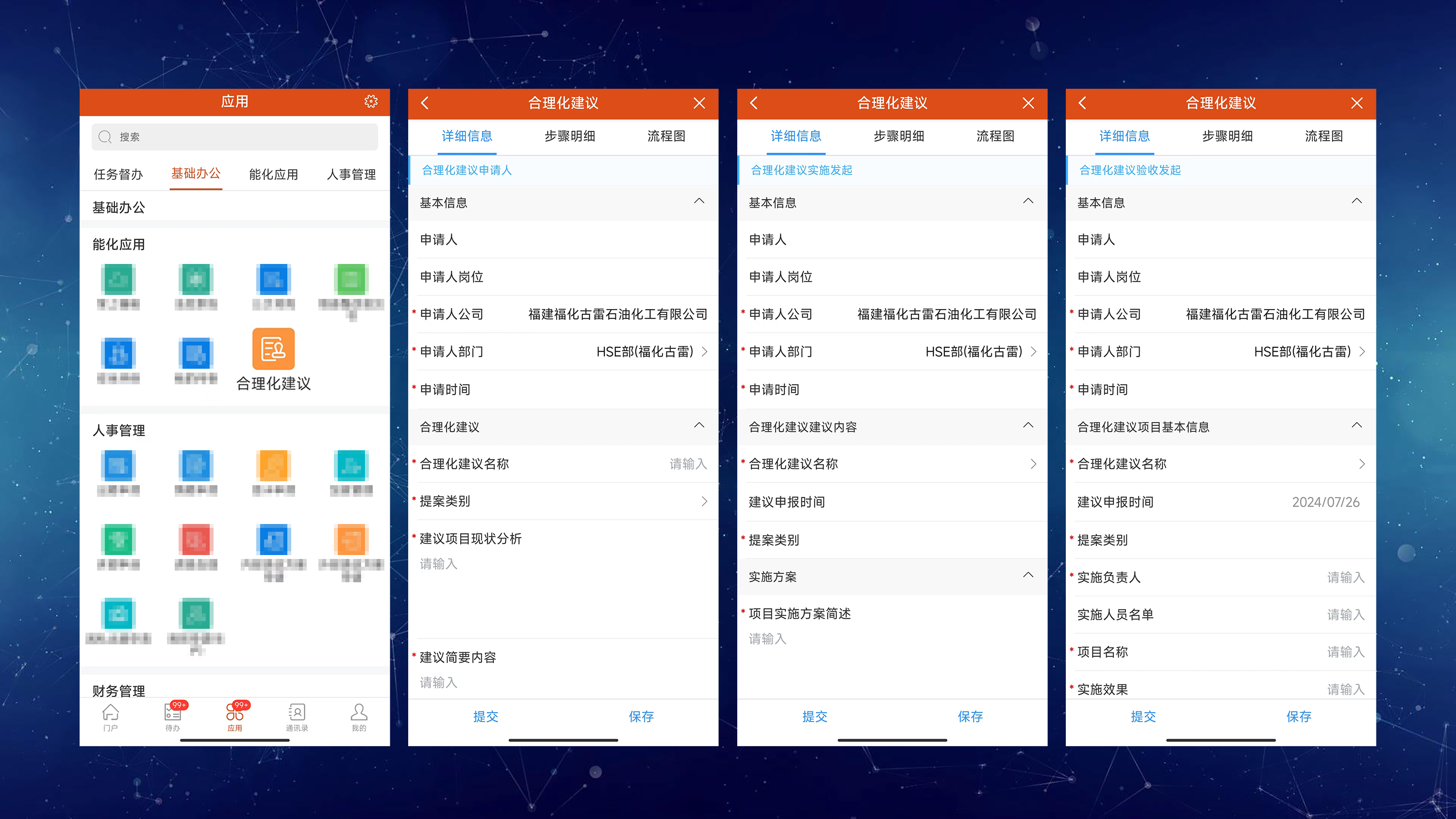 智慧能化APP“合理化建议”模块按照“申请-实施-验收”的思路,设计了“合理化建议申请”“合理化建议实施单”“合理化建议验收”3个清晰直观的表单,为公司职工快速便捷地提出合理化建议畅通了渠道,促进职工充分发挥主力军作用,更好地参与到公司日常经营管理中,同时将结合评优评先并给予适当奖励等措施,激励广大职工积极为公司高质量发展贡献力量。