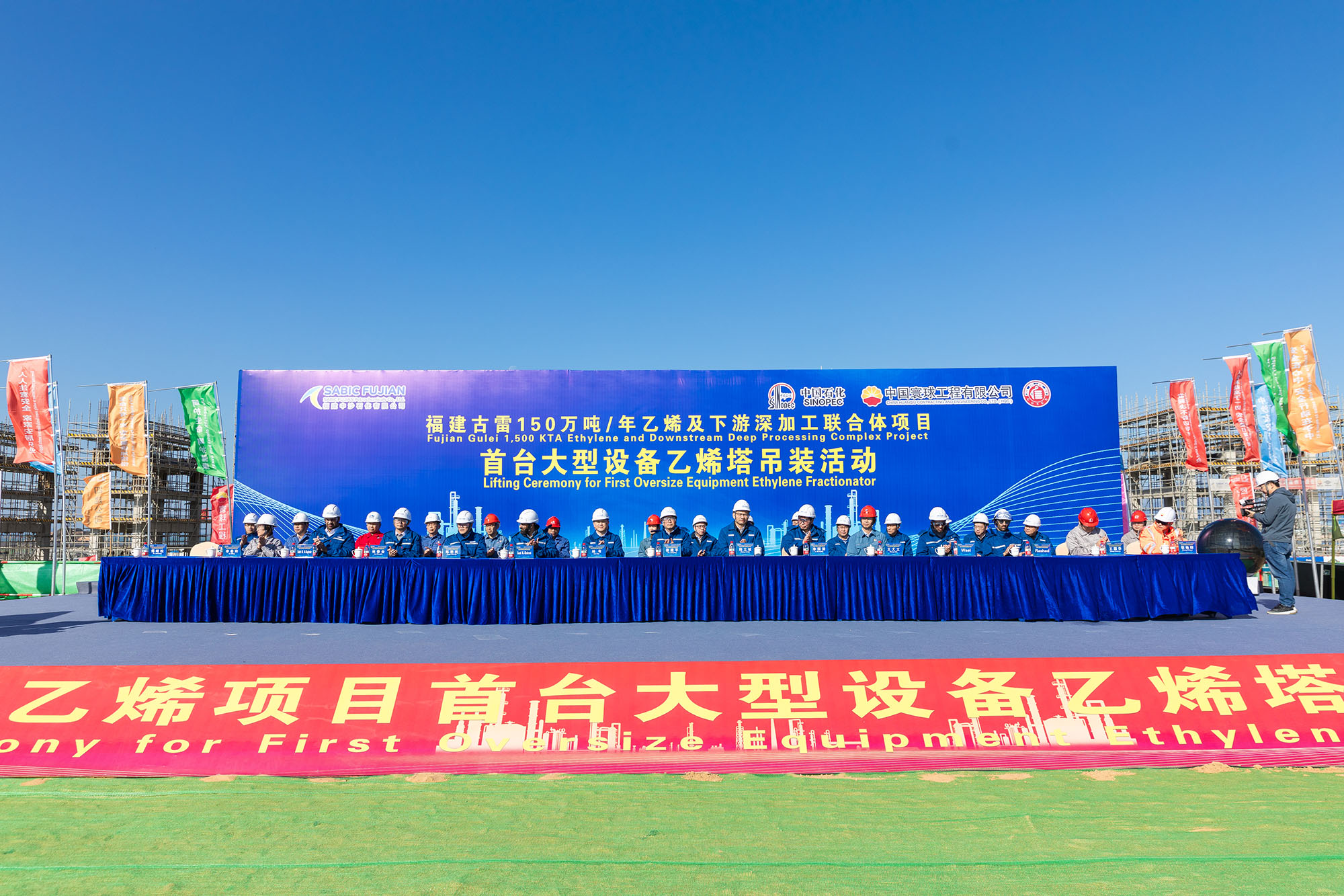 2024年12月20日,中沙古雷乙烯项目首台大型设备乙烯塔顺利完成吊装。省发改委总规划师林有,市委常委、副市长、古雷开发区党工委书记郑立敏,福建能源石化集团党委书记、董事长、福建中沙石化有限公司副董事长徐建平,出席吊装仪式。