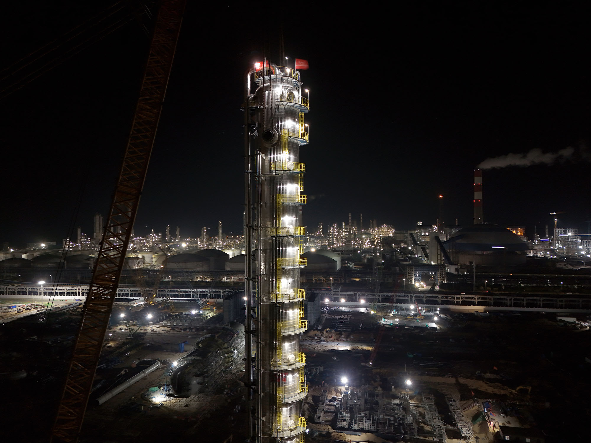 乙烯塔的顺利吊装标志着中沙古雷乙烯项目开始进入安装阶段,是项目建设又一重大里程碑节点。